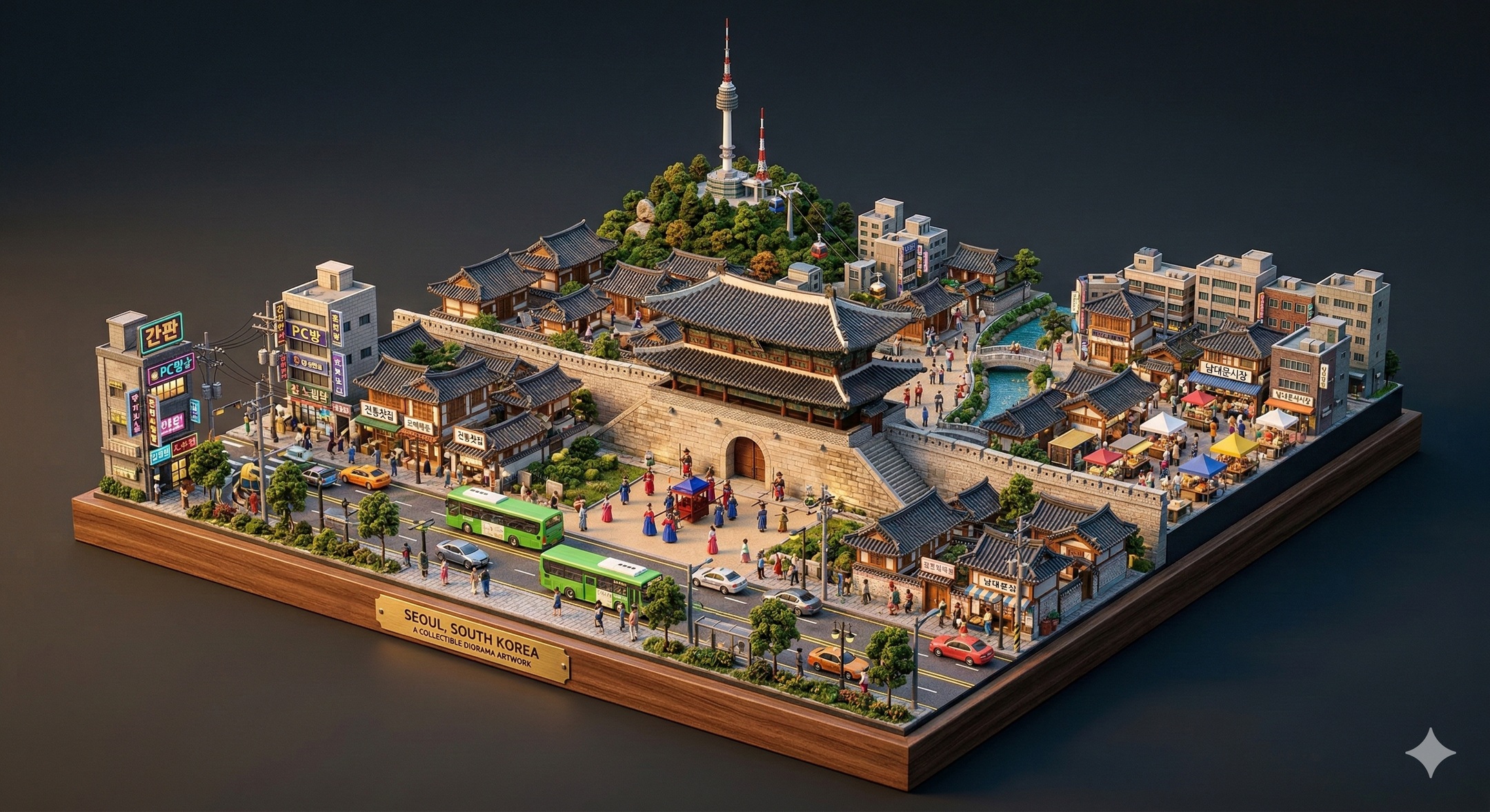 [서울]를 주제로 한 프리미엄 미니어처 랜드마크 디오라마.